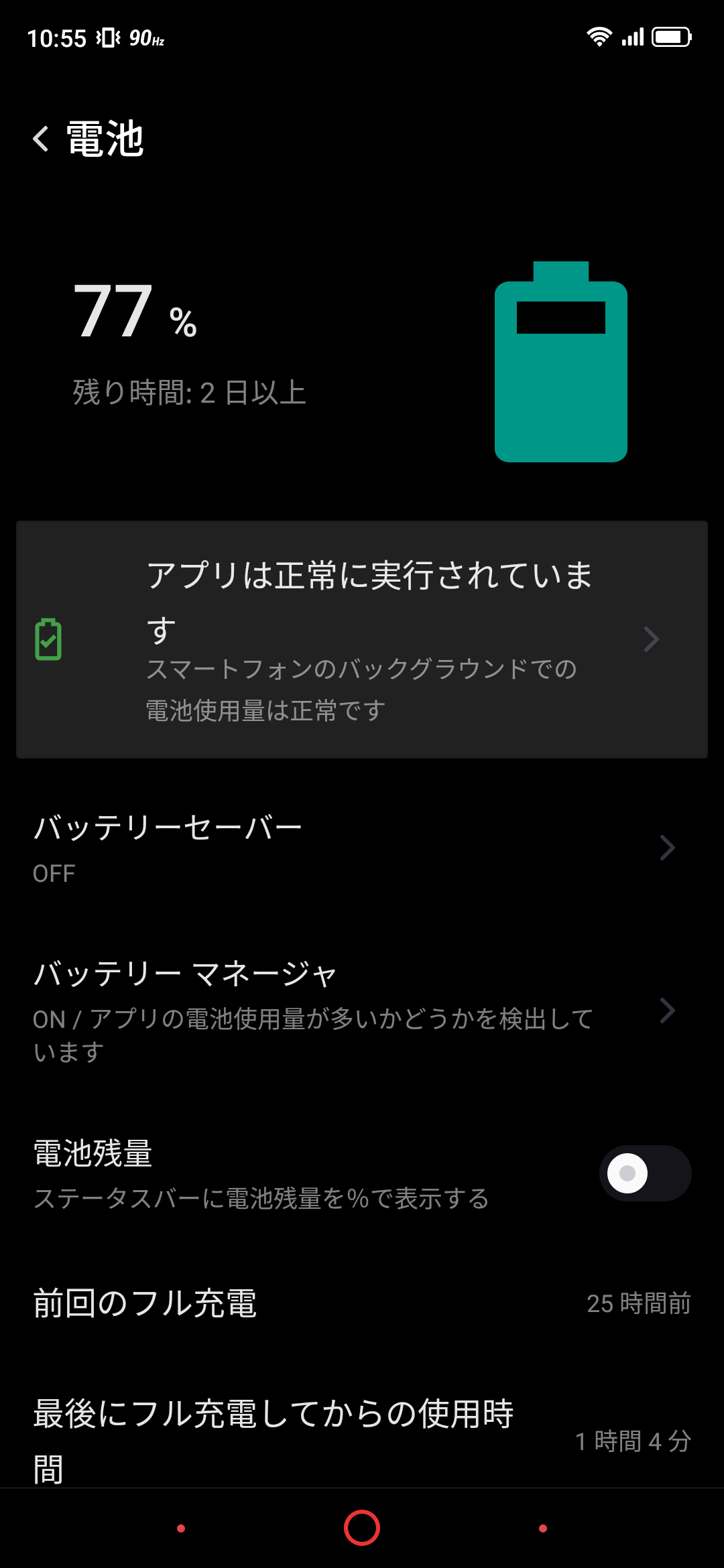 ヘヴィなスマホユーザーである筆者が使っても、1日で電池がなくなることはありませんでした。といっても、最近はコロナの影響で外出の機会が減っているので、電池持ちを心配する必要はないかもしれませんね。