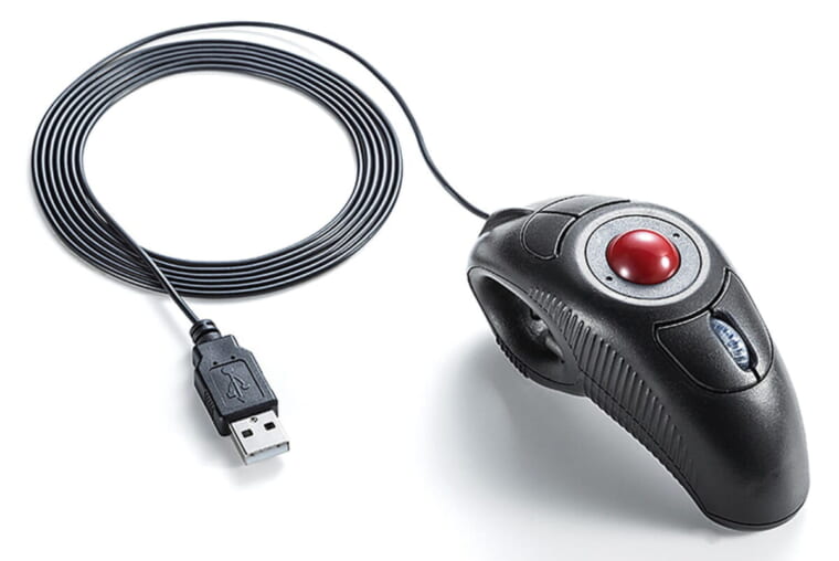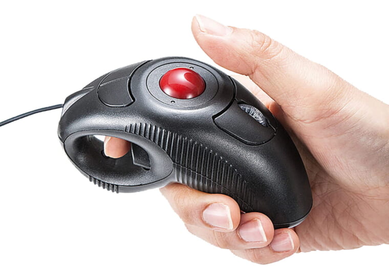 場所を選ばず、マウス代わりに使えるポインティングデバイス。親指でトラックボールと下部の右クリックボタンを操作し、人差し指のトリガーで左クリックを行う。上部にはホイール押し込みボタンとダブルクリックボタンも装備する。