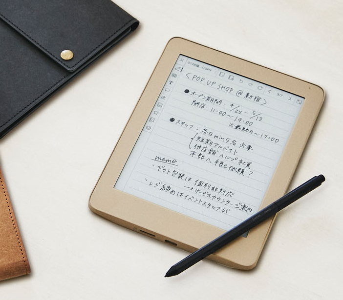 E ink社の電子ペーパーとワコム製のデジタルペンを採用したデジタルノート。4096段階の筆圧検知に対応するほか、明るさや色味を調節できるフロントライトを備える。PCやスマホと連携可能で、本機に約8万7000ページぶんノートを保存できる。