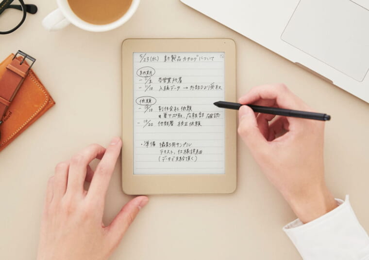 「紙のメモは『整理しづらい』ことが弱点。デジタルノートなら検索性が大きく向上するうえ、紙より荷物が軽くなります。バッテリーが10日近くもつ、十分なスタミナも◎」