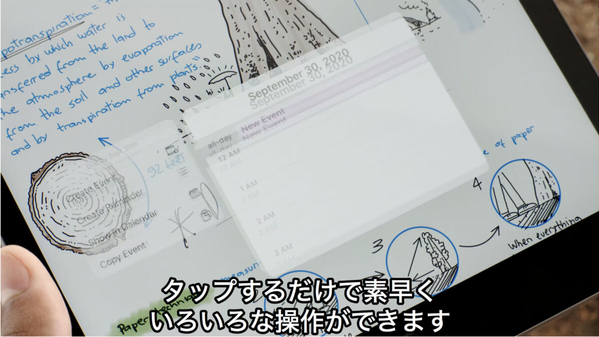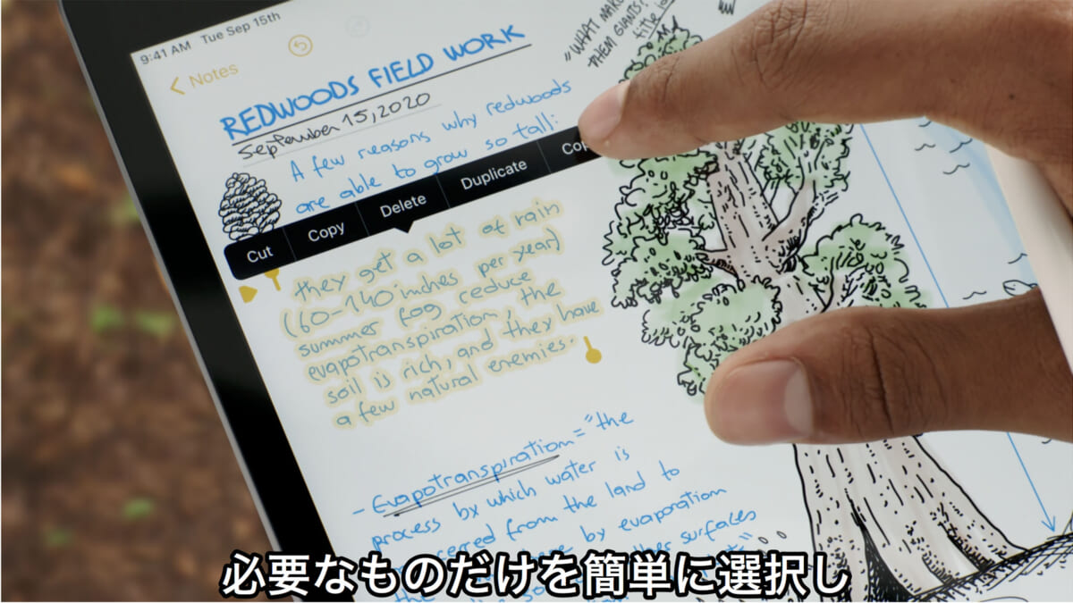 アクセサリーは、フルサイズのSmart Keyboardが使用可能なほか、Apple Pencil(第1世代)にも引き続き対応。最新のiPadOS 14との組み合わせにより、高精度な手書き入力が可能となっています。