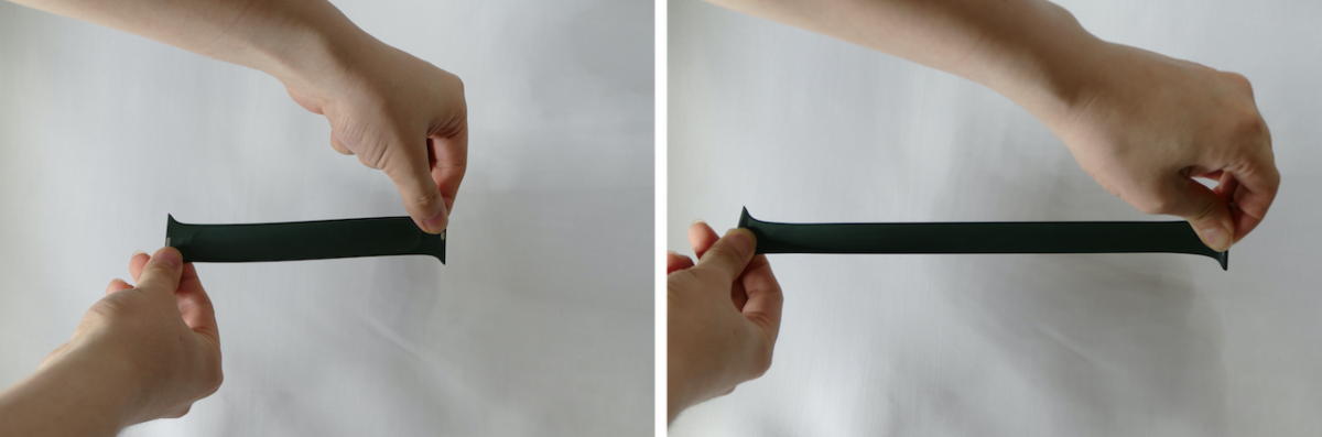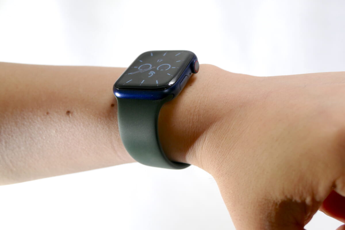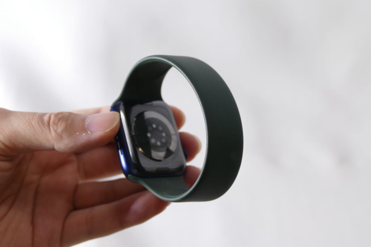 新たに追加された「ソロループバンド」も試してみました。ソロループバンドは留め具がない新デザインのバンドです。素材には、ソフトシリコーンが使われており、特殊なUV加工を施すことで、滑らかでシルクのような仕上がりに整えられています。