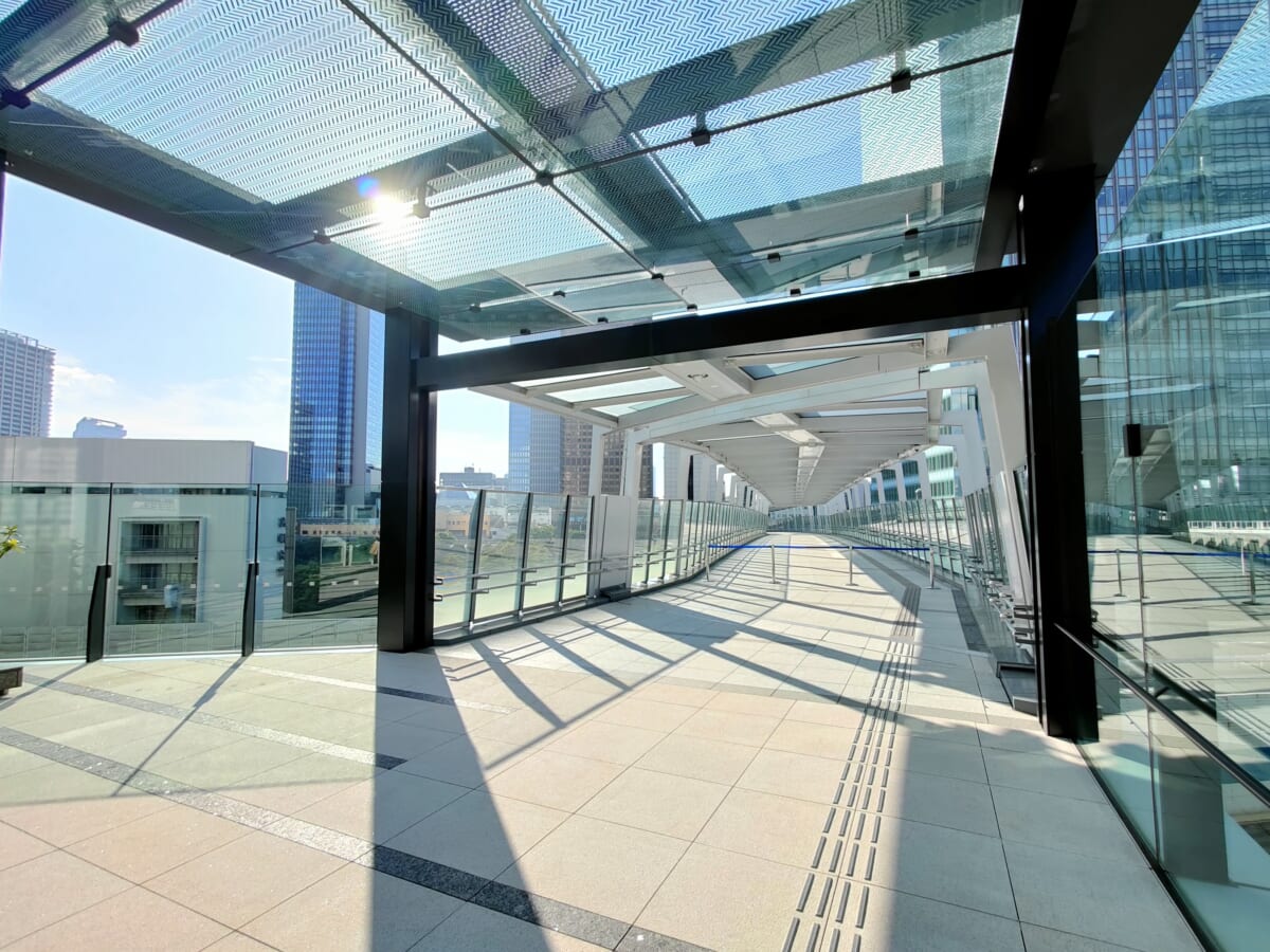3階には「東京都立産業貿易センター 展示室」という広い多目的ホールがありました。このフロアだけでなく、2階〜5階が「東京都立産業貿易センター 浜松町館」になっていて、展示会や見本市、各種カンファレンスなどに使われるそうです。さらに、3階にはブルーボトルコーヒーがあります。開放的なテラス席でコーヒーを飲むことができます。路面店ではないので、しばらくの間は、知る人ぞ知る穴場になるかもしれません。