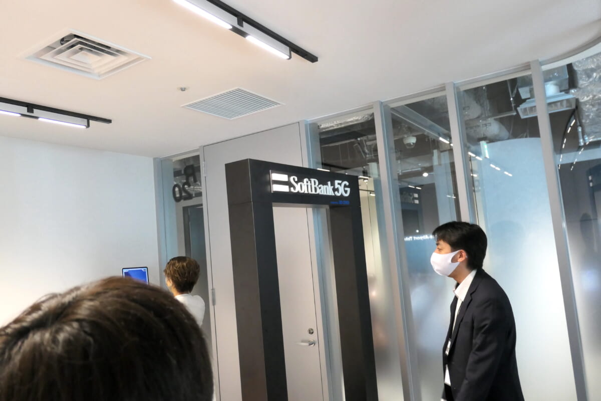 6階はオフィスロビー。ソフトバンクの社員は、顔認証でゲートを通過して、カードキーなどを使うことなく、自分の部署のフロアまで行けるそうです。とは言え、社内はフリーレイアウトで、フロア間を行き来できる階段を設置するなど、フレキシブルで風通しのよい環境になっているとのこと。