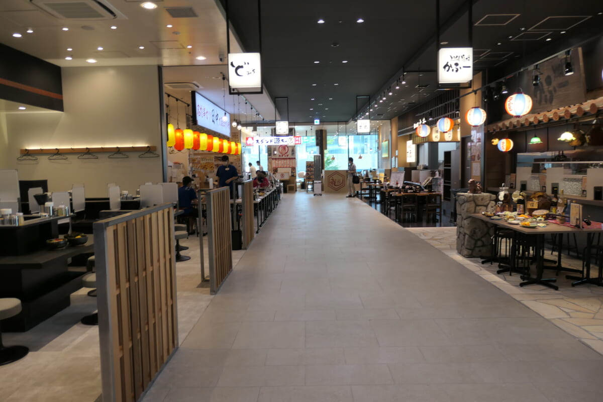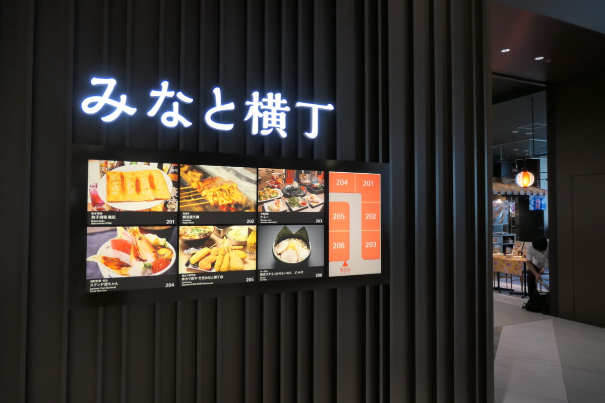 2階には、一般の人でも利用できる飲食店ゾーンがあります。イタリアン、中華、タイ料理、スパイスカレーなど8店が出店しているのに加えて、「みなと横丁」というゾーンがあり、昔ながらの飲み屋街といった雰囲気で、仕事帰りの一杯を楽しめそうです。