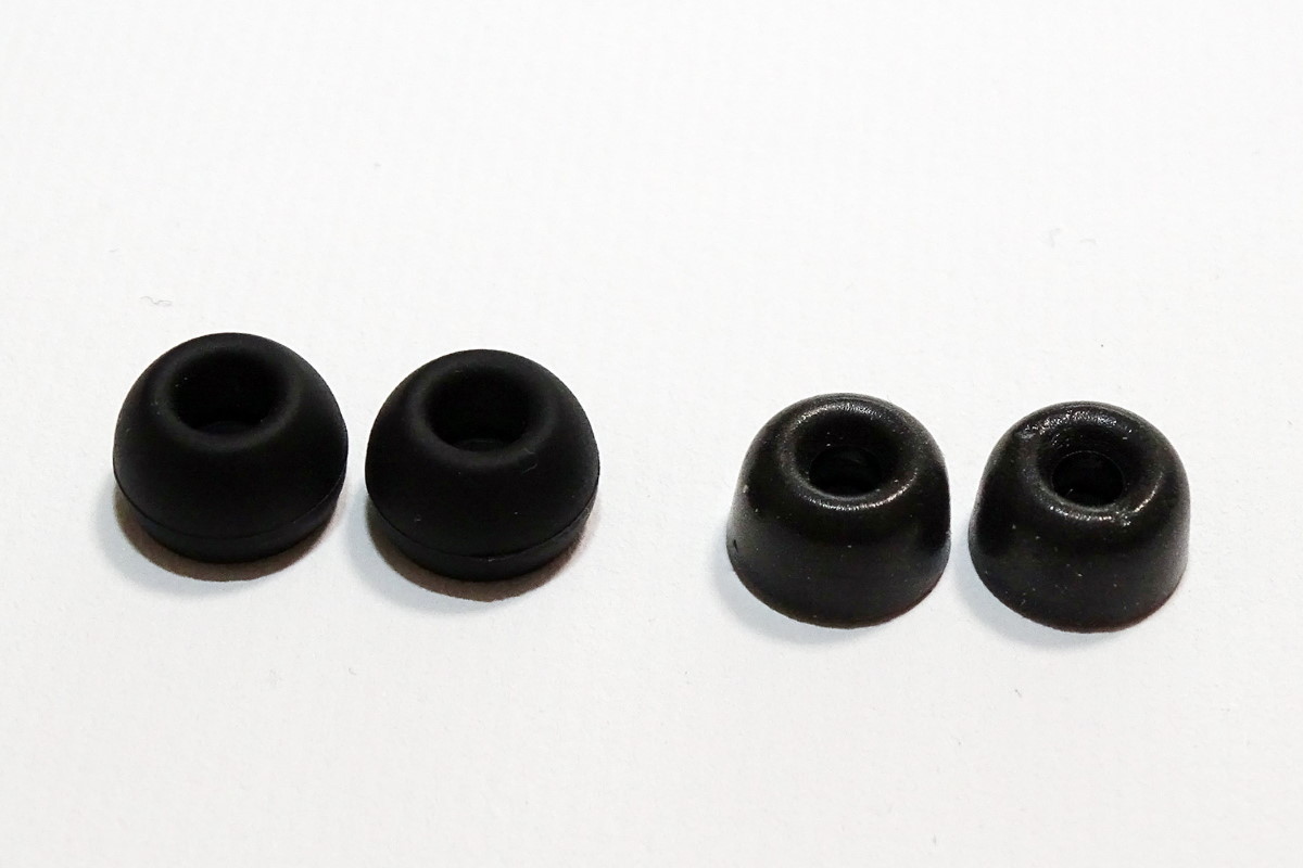 ノズルの先端に着脱できるイヤーピースはフィット感が異なるシリコン製の「Block Ear+」とフォームタイプの「Magic Ear+for TWE」の2種類を同梱しています。どちらも抗菌仕様のイヤーピースなので安心して使用できますね。パッシブな消音効果は等しく高いレベルにありますが、フォームタイプのイヤーピースは低音域の弾力感が引き締まり、シリコンタイプのイヤーピースは中高域の抜け感が引き立つ特徴がそれぞれに感じられました。楽曲に合わせて付け替えながら音質の変化も楽しむのもいいでしょう。
