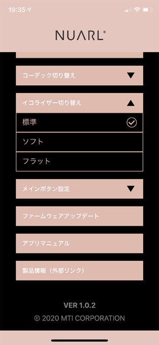 アプリのイコライザー機能を使えば、サウンドのカスタマイズもできます。デフォルト設定は「標準」ですが、ボーカルや楽器のメロディの滑らかさが引き立つ「ソフト」と、演奏全体のトーンが落ち着く「フラット」の2種類から、聴きたい音楽のジャンルやその時の気分に合わせたリスニング感の調整も楽しめます。