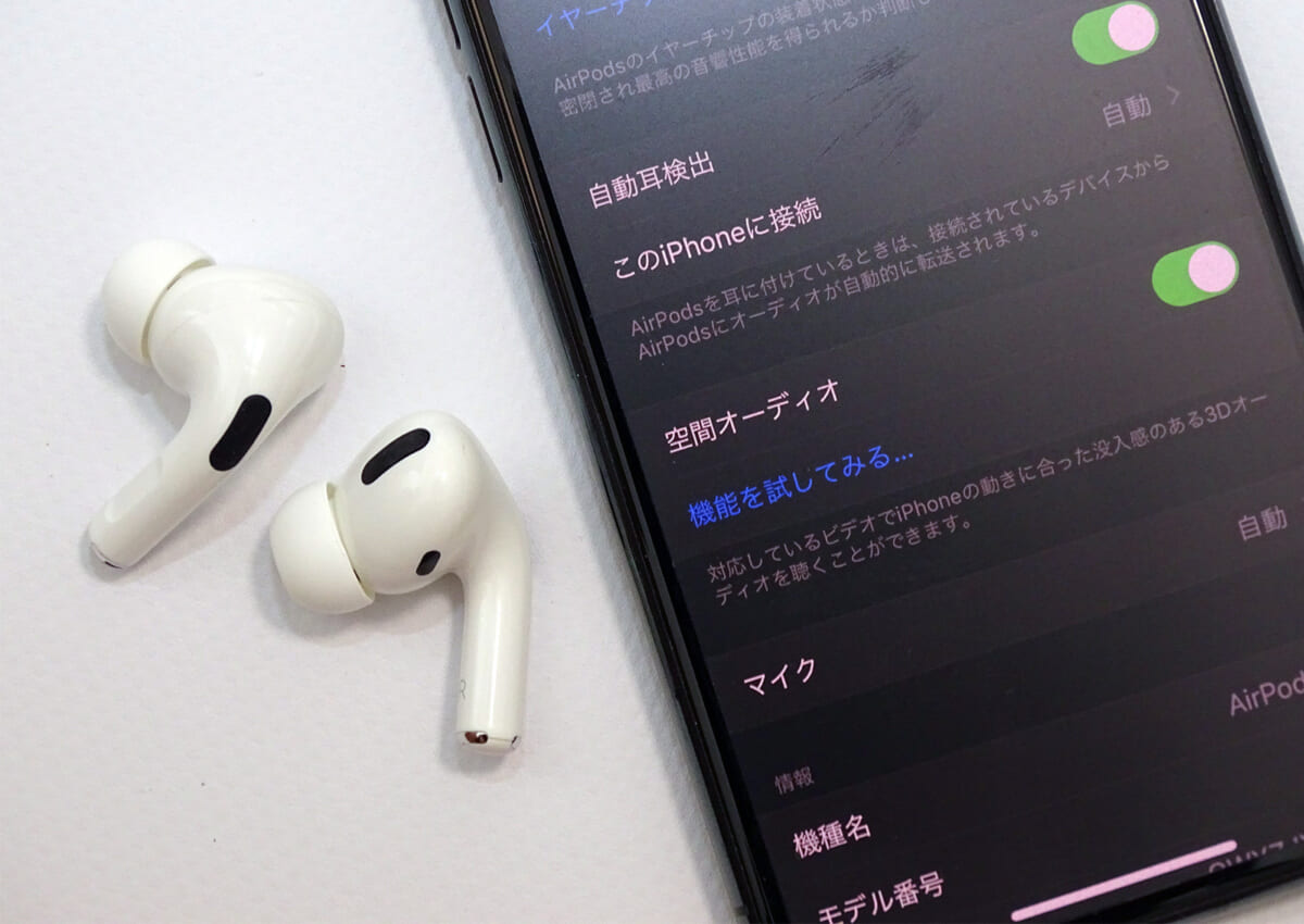 新しく追加された機能は、AirPods ProとiPhoneの組み合わせで映画のサラウンド音声が楽しめる「空間オーディオ」、ユーザーの聴こえ方に合わせてサウンド調整をカスタマイズできる「ヘッドフォン調整」、そしてAirPodsと接続設定を済ませているデバイスがサウンドを再生した時に、接続先を自動で切り換えてくれる機能の3点です。