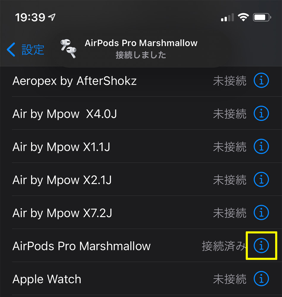 iOS 14の場合、自動切り替えの設定はBluetoothリストに並ぶ製品の「i」アイコンをタップしてから「このiPhoneに接続」のメニューが「自動」になっていればOKです。