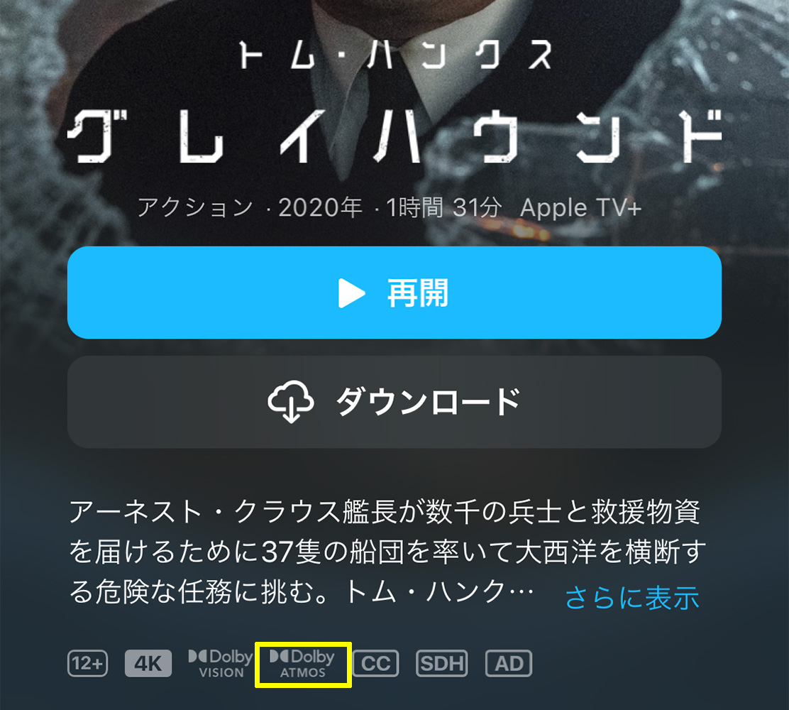筆者が本稿を書いている2020年9月下旬時点で、空間オーディオ再生が楽しめるコンテンツは「Apple TV」アプリで視聴できる、定額制配信サービス「Apple TV+」のオリジナルコンテンツ、または都度課金でレンタル・購入して見られる作品が該当。その中で音声を5.1ch/7.1chサラウンド、またはドルビーアトモスにより収録しているタイトルになります。