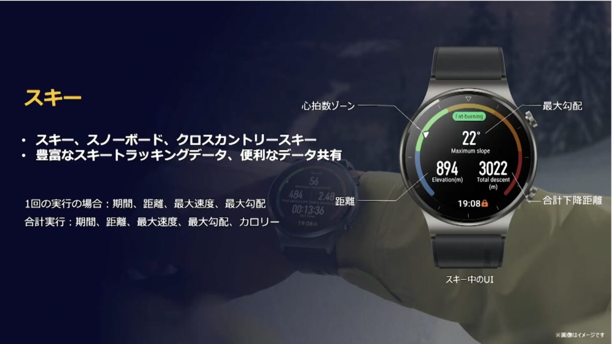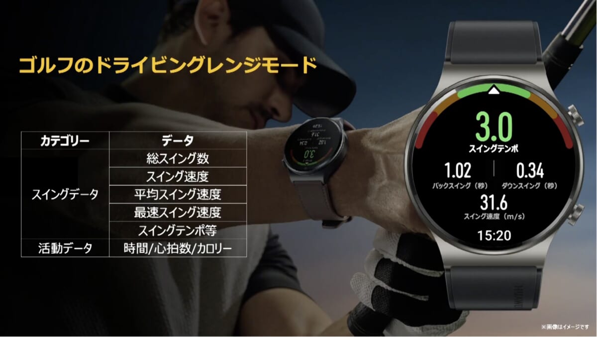 機能面では「スポーツモード」が進化。85種類以上のワークアウトモードを搭載し、そのうち17種類は本格的なデータ分析が行われる「プロスポーツモード」に対応しています。GT 2 Proでは、新たに「スキー」と「ゴルフ」のプロスポーツモードが追加されています。