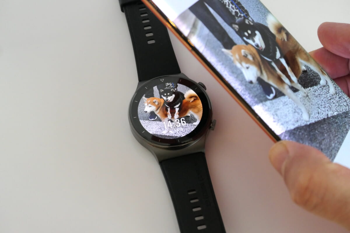 HUAWEI WATCH GT 2 ProはAndroid、iPhoneのどちらでもペアリングして使えますが、Androidなら「フェイスウォッチストア」から多彩な文字盤デザインをダウンロード可能。さらに、ファーウェイのスマホなら、お気に入りの画像を表示させてWATCHにかざすだけで、その画像をウォッチフェイスにできます。