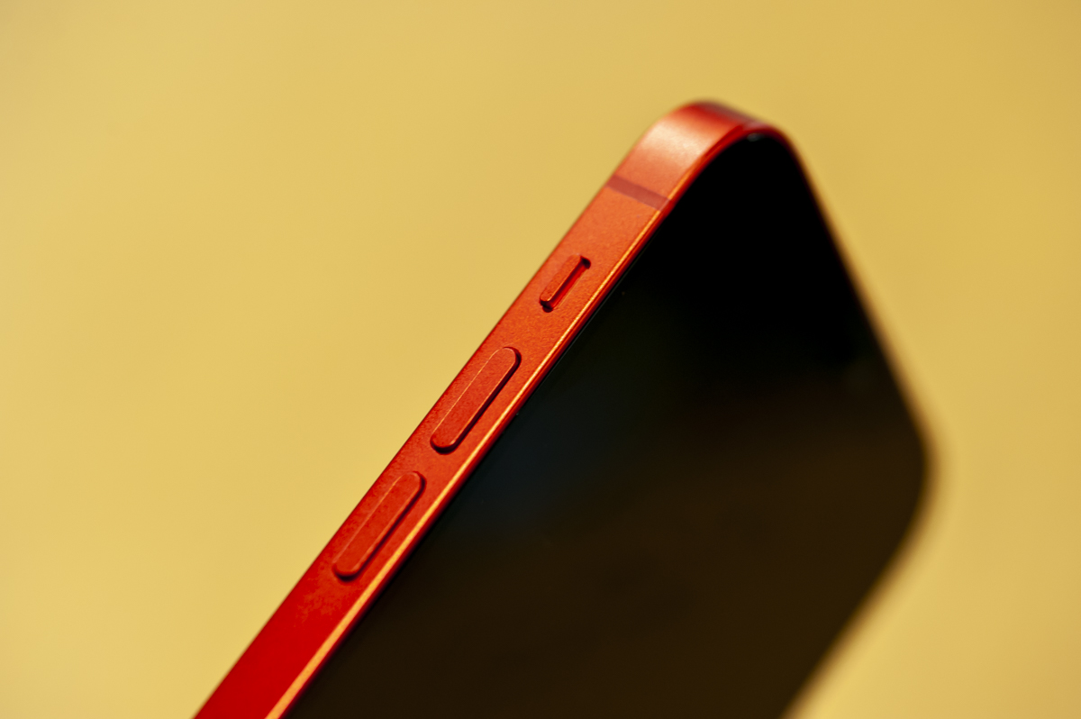 触ったiPhone 12は(PRODUCT)RED! 12では発色が良くかなりポップな印象でしたね。発表時点から「5シリーズを思い出す!」と話題だったエッジ部のデザインですが、実際に触ってみると手にすっと馴染む感覚がしました。