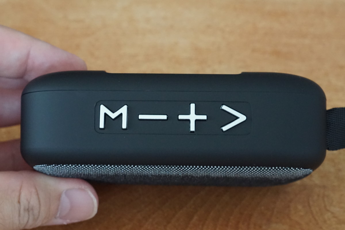 上部にはボタンが配置されており、電源ON/OFFや再生/一時停止などの操作が可能。曲送り/曲戻しボタンは、長押しすることでボリューム調整もできます。また、スマホなどにワイヤレス接続しているときに着信があった場合、受話ボタンを押せばハンズフリー通話も可能です。キッチンなどで使っていて、手が濡れてスマホを触りたくないときなどは便利ですね。