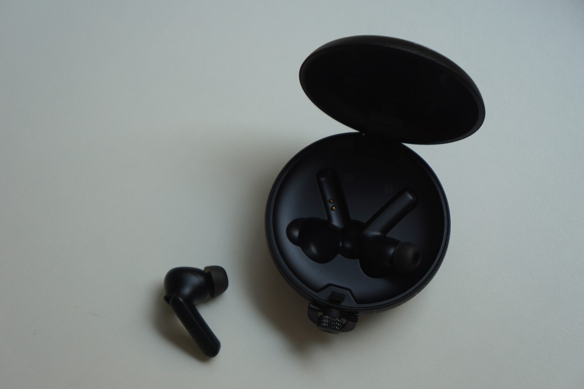 充電ケースは懐中時計をモチーフにしたユニークなデザインを採用。リューズのようなボタンを押すとカチッと音が鳴りケースが開く、という仕掛けで、まるで秘密道具やスパイ道具を使っているような気分になれます。イヤホンをケースから取り出す動作も、このギミックが特別なものにしてくれます。