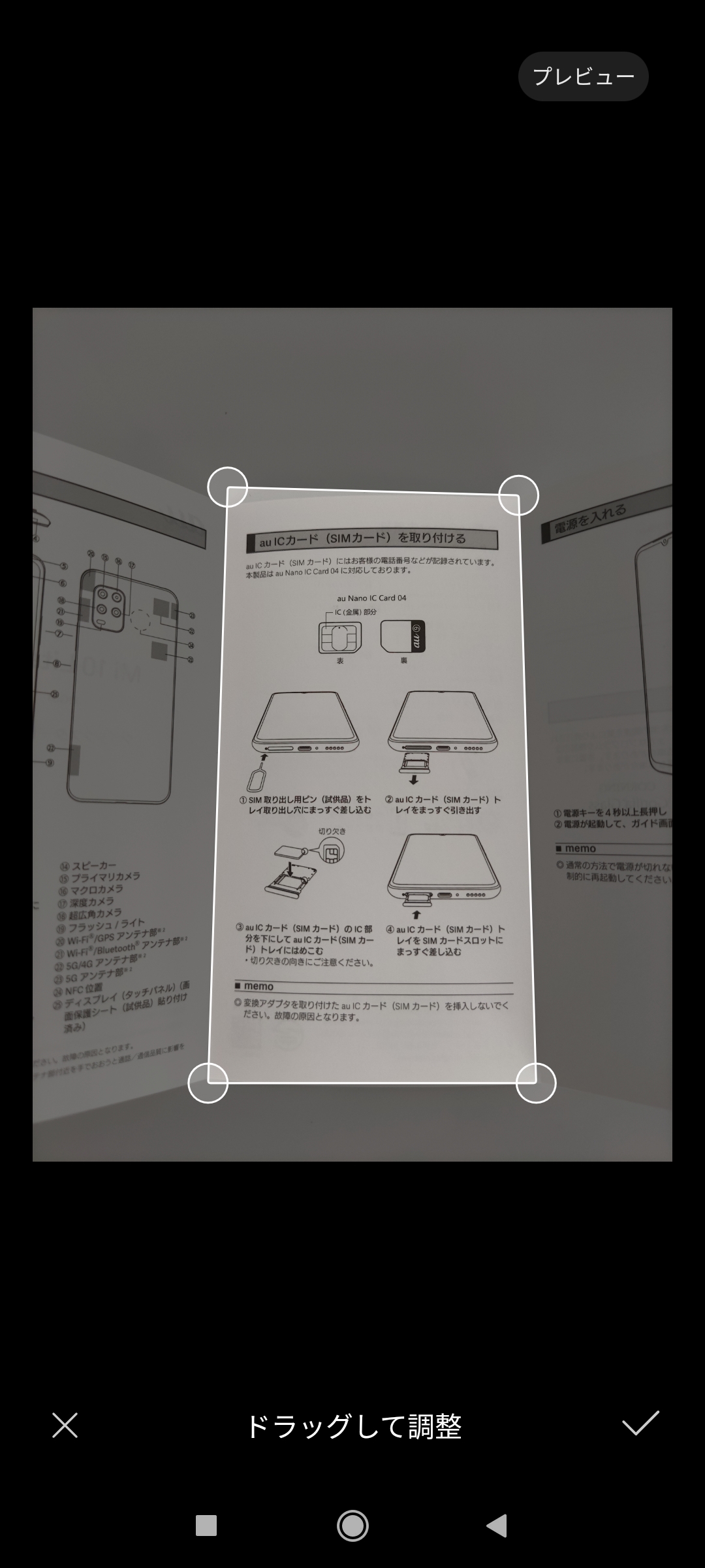 クアッドカメラはメイン(約4800万画素/F1.79)+超広角(約800万画素/F2.2)+マクロ(約200万画素/F2.4)+深度センサー(約200万画素)という構成。望遠カメラは搭載しておらず、最近の上位モデルに比べるとスペックはやや低めです。