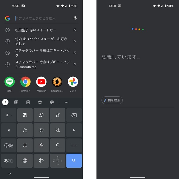 鼻歌検索にはGoogle検索を起動してマイクアイコンをタップ、音声入力モードに切り換えてから「曲を検索」を選ぶか、またはGoogleアプリを開いてからマイクアイコンをタップする手順でもたどり着けます。