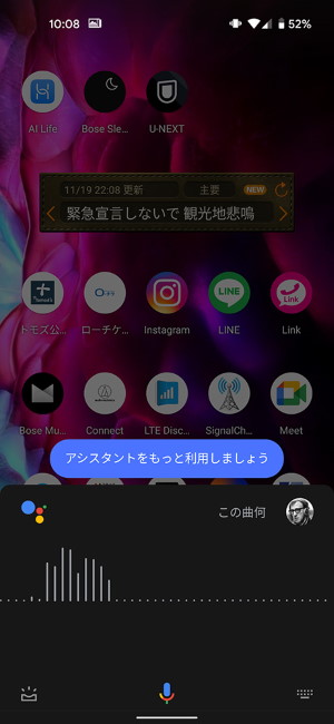 Googleアシスタントに直接話しかけて「OK Google、この曲は何?」と聞いてから鼻歌を始めてもOKです。