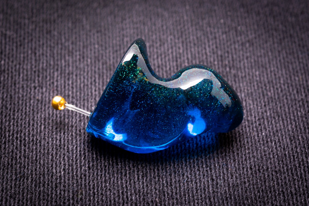 カラーは、クリア、スモーク、ブルー、レッド、イエロー、グリーン、シアン、ピンク、オレンジ、パープルの10種類をラインナップ。追加料金なく左右で別のカラーを選べます。さらに、オプションとしてグリッター2色(ゴールド/シルバー、片耳550円)や、首かけ用のケーブル(2000円)なども用意されています。