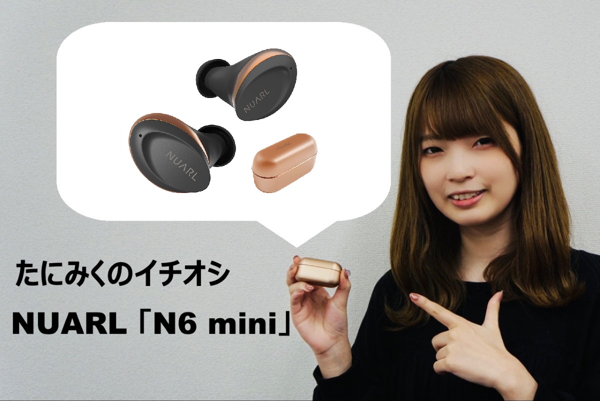 たにみく:N6 miniのどこが1番いいかと聞かれたら、まず「とにかく小さい」ところを挙げますね。兄弟機種のN6/N6 Proに比べて本当に小さくなって、NUARLの完全ワイヤレスイヤホンのなかでも最小サイズなんです! だから装着していて疲れないし、耳から変にはみ出ることもナシ。耳の小さな人にもオススメです。