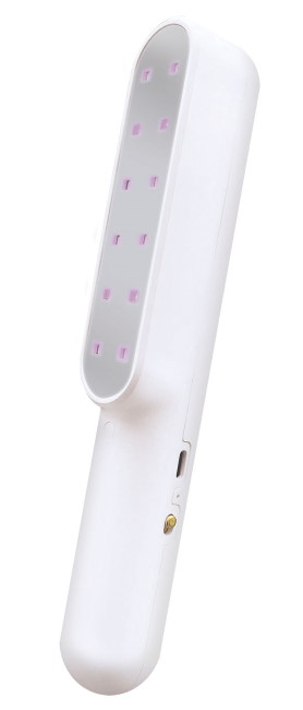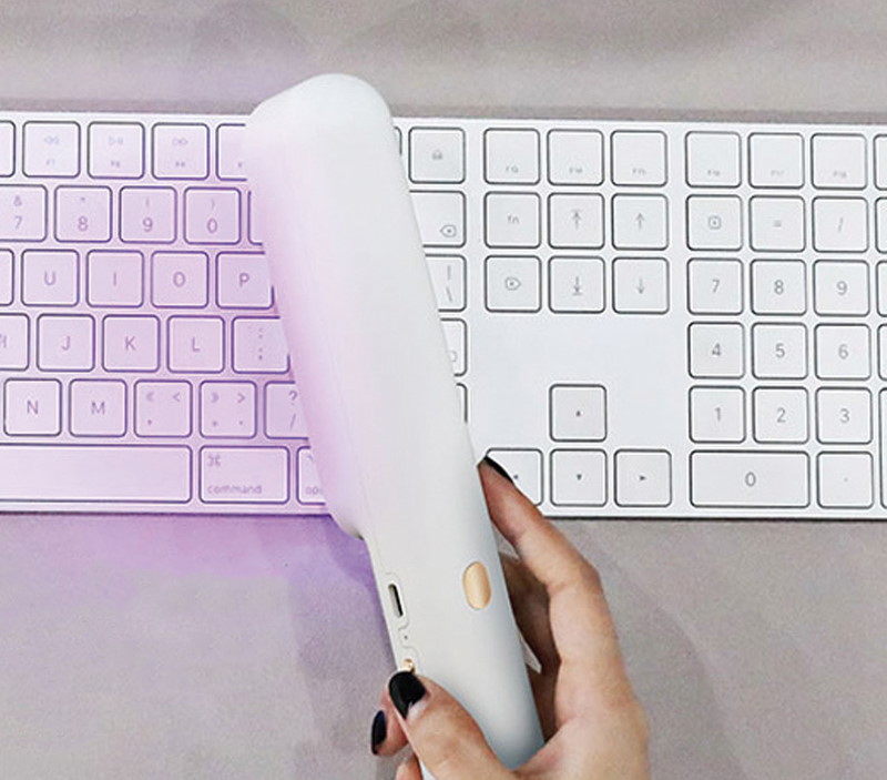 紫外線(UV-C)を利用したハンディ除菌器。約20秒の照射で99%の除菌が可能だ。手持ちでライトを当てるタイプなので、鍵やアクセサリーなど複雑な形状のものも除菌できる。バッテリーを内蔵しており、便座や飛行機内のテーブルなど、出先でも利用しやすい。