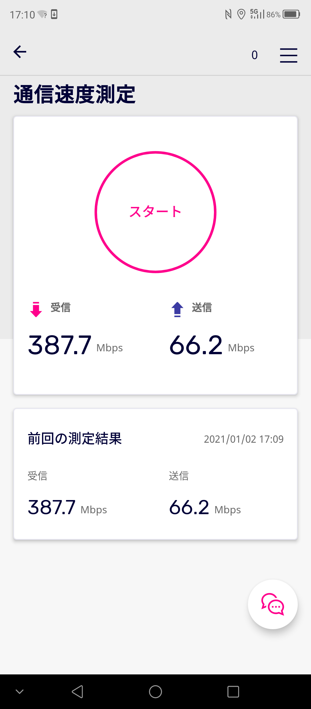 楽天モバイルの5Gエリアはまだ限定的ですが、すでに5Gが開通している場所でBIGの通信速度を測定したところ、概ね200〜400Mbpsのダウンロード速度を確認できました。同じ場所でのHandとMiniの受信速度は25〜40Mbps程度でしたので、速度面ではBIGに大きなメリットがあります。