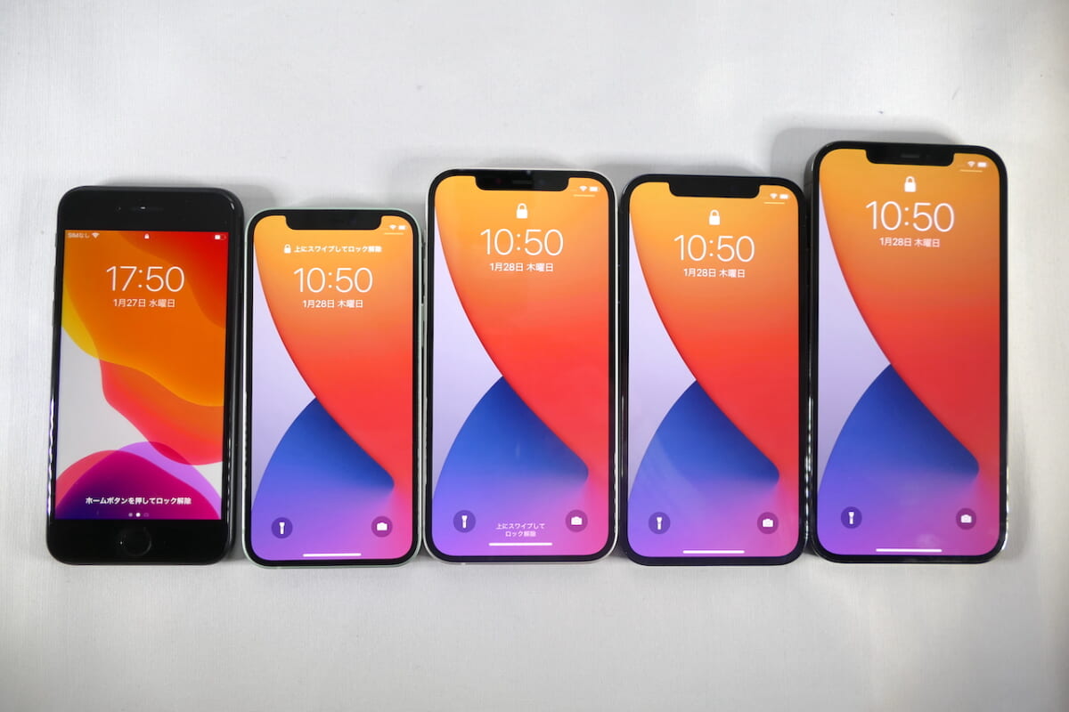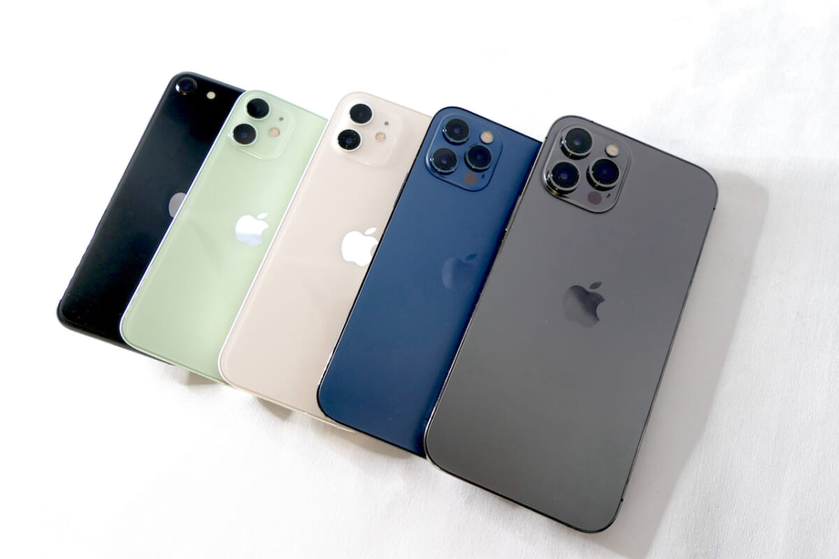 2020年秋に登場した「iPhone 12」シリーズは、全部で4機種。価格が安い順に「iPhone 12 mini」「iPhone 12」「iPhone 12 Pro」「iPhone 12 Pro Max」です。これに、同年4月に発売された「iPhone SE(第2世代)」を加えた計5機種が、現行のラインナップとなります。なお、iPhone SE(第2世代)は、5Gには対応していません。