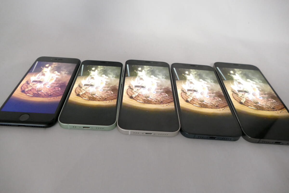 また、iPhone 12シリーズには、ディスプレイにOLEDが使われており、コントラスト比が高いのが特徴。動画視聴時に、深みのある黒を表現できます。液晶ディスプレイを使う「iPhone SE(第2世代)」と比べると、視野角がついた際などに一定の差が出ます。