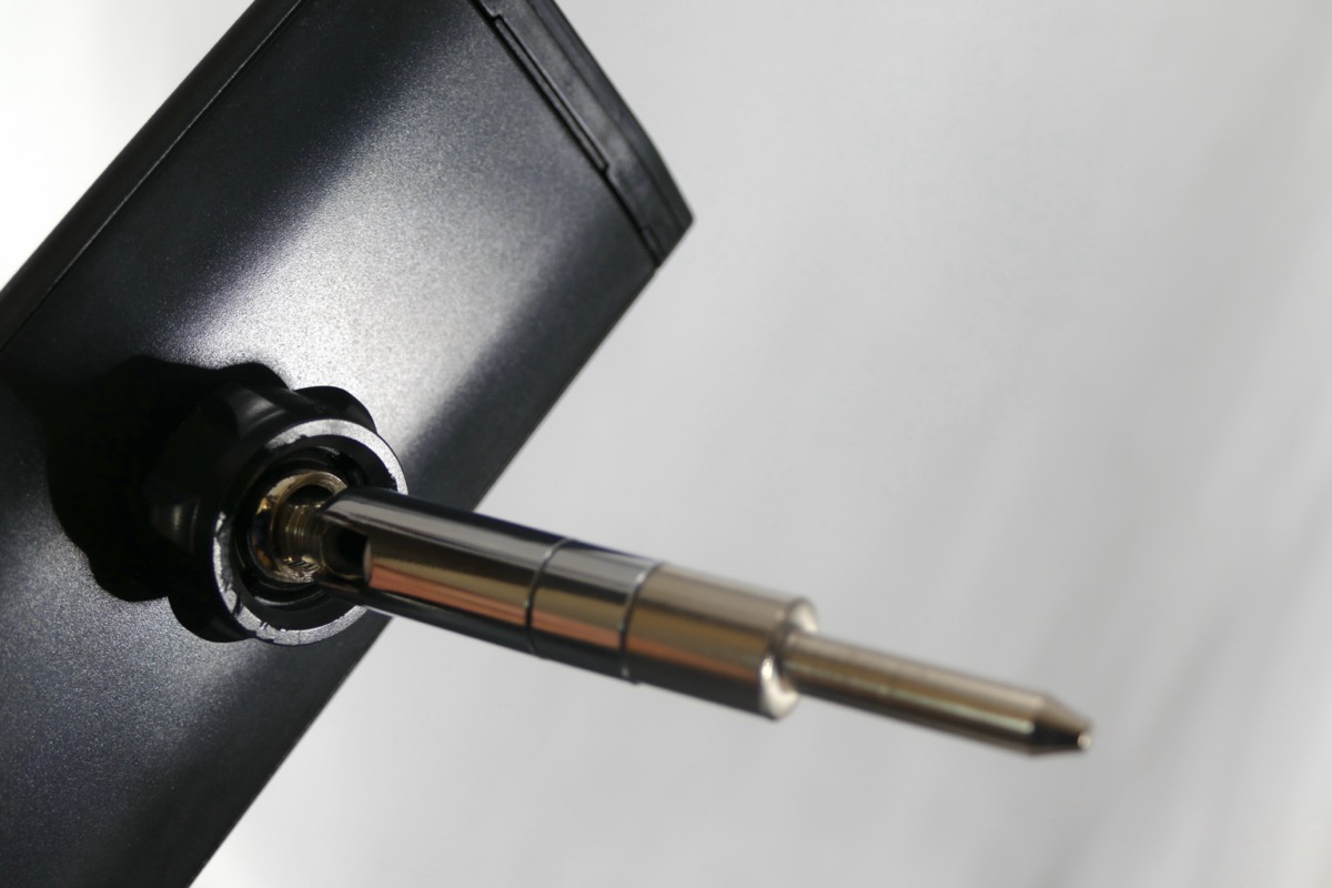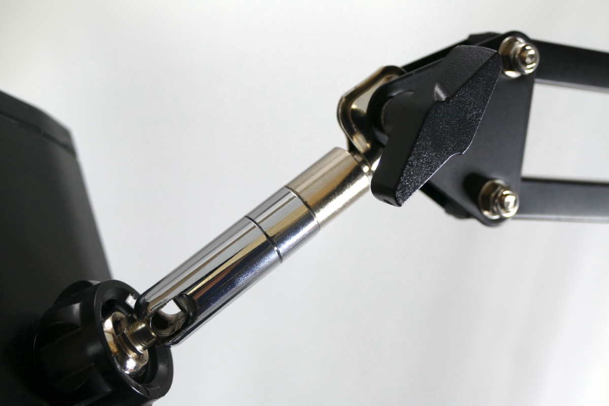 ホルダー部に専用の金具をはめ込んで固定。そして、その金具をアーム部に用意された金具に差し込んで、ネジで固定すれば準備完了だ。あとはホルダーをグッと開き、ディスプレイを挟むようにして固定する。ディスプレイに触れる部分は柔らかくなっているので、デバイスを傷つける危険性も少ないだろう。なお、アームやディスプレイの角度調整は片手でも簡単に行えるほど、スムーズだ。