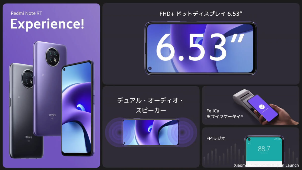 SIMフリー市場向けには4G LTE対応の「Redmi 9T」が発表されました。メモリ4GB、ストレージ64GBの構成で価格は1万5900円。大画面やデュアルSIM対応など、コスパだけではない魅力を備えています。