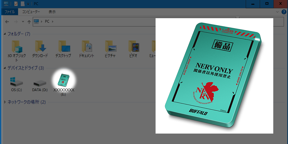 両製品とも、NERV官給品をイメージした特装パッケージに入っており、PC認識時に表示されるドライブアイコンは特別仕様となっています(Windowsのみ対応)。