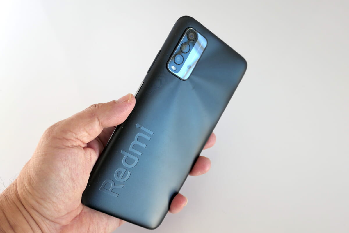 4GのSIMフリーモデル「Redmi 9T」も6.53インチの液晶ディスプレイを搭載しています。背面パネルのデザインは異なりますが、やはり指紋が付きにくい加工が施されて、さほど安っぽくは見えない仕上がりです。