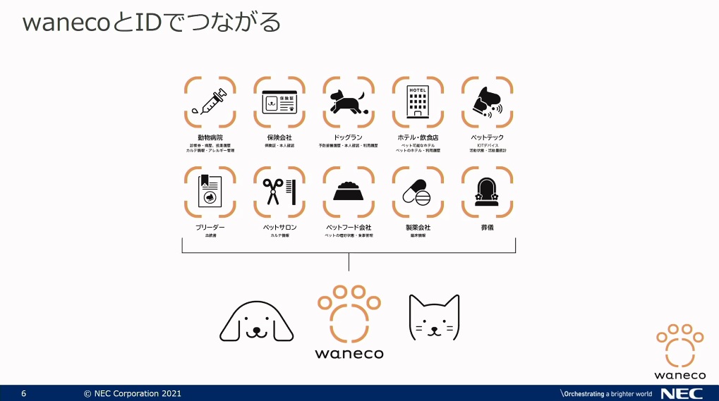 同社は、ペットを1つのIDで管理し、様々なサービス提供者がその情報を横断的に利用できるプラットフォームサービス「waneco」を発表しました。