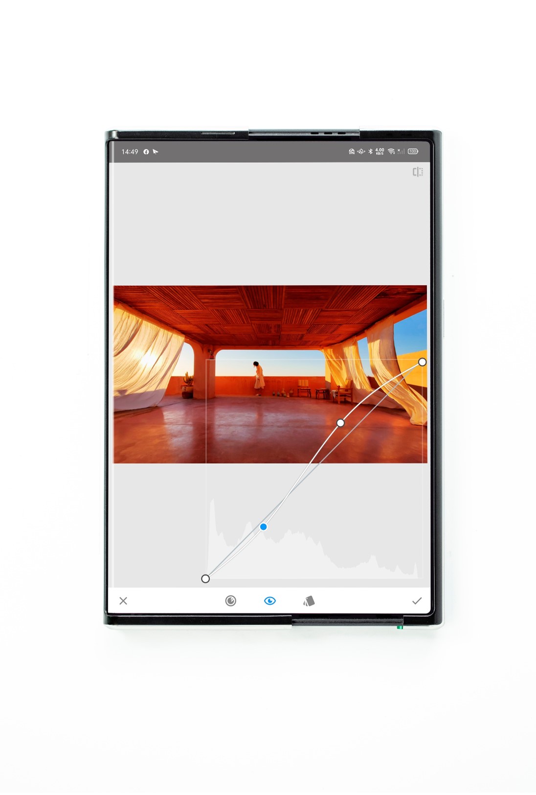 通常は1列の「設定」画面の表示が2列になったり、電子書籍の1行に表示される文字数が増えたり、ただ拡大されるのではなく、表示される情報量が増えたり、レイアウトが変わって可読性が向上することがポイント。新しい技術と、それに合わせたソフトウェアとも融合で、スマホの使い勝手も大きく向上しそうです。