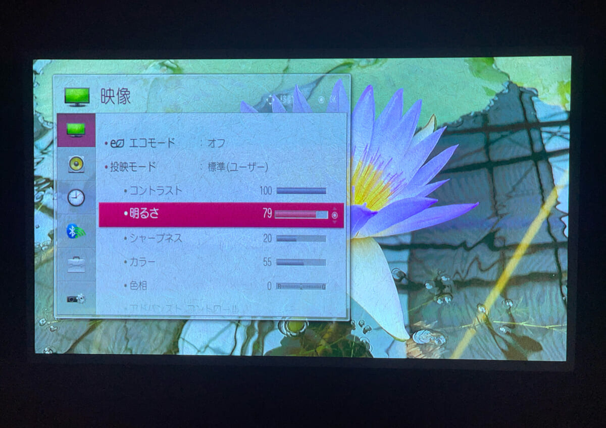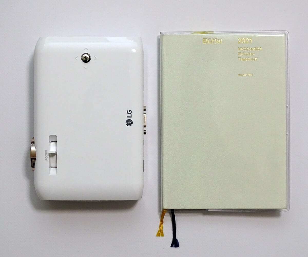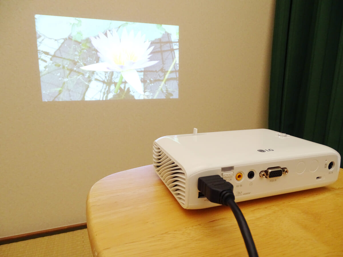ひとつは明るい部屋では映像がやや見づらくなるところです。やはりコンパクト機はパワフルな大型ランプを積めないため如何ともしがたいと思います。とはいえランプの明るさは550ルーメンと、このサイズのポータブルプロジェクターとしては平均的なレベルです。昼間は部屋の遮光カーテンを閉めたり、夜間は照明を少し落とせば映像がくっきりと見やすくなるので試してみてください。