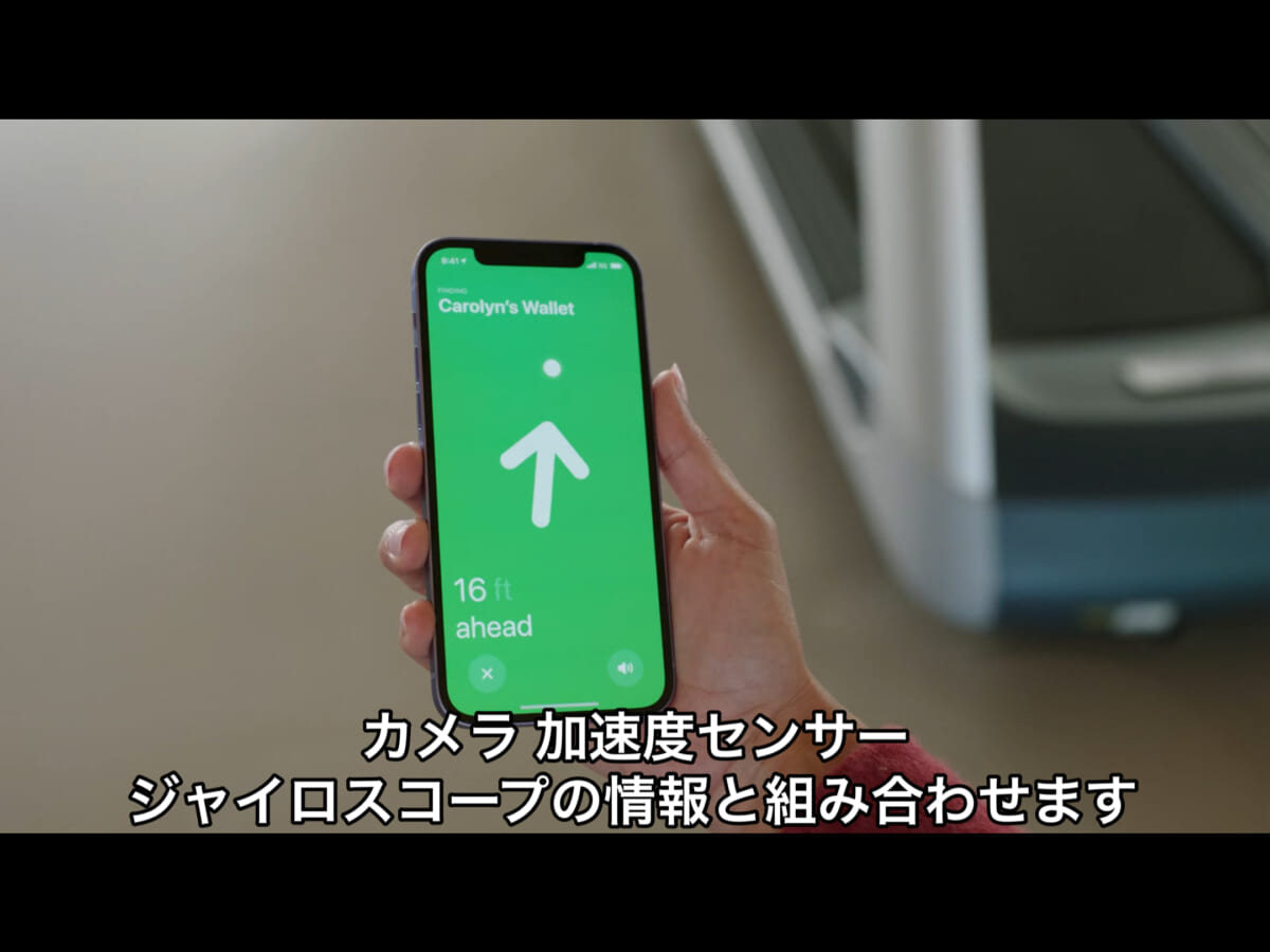 AirTagはBluetoothを利用したトラッカーで、ユーザーの持ち物をあっという間に見つけてくれます。iOSデバイスの「探す」から検索が可能で、iPhone 12のようなU1チップを搭載したデバイスなら、紛失した物が近くにあればAR表示を用いて誘導してくれます。さらに、「Hey Siri、お財布を探して」と指示すれば、タグ自身に搭載しているスピーカーを鳴らして見つけることも可能です。