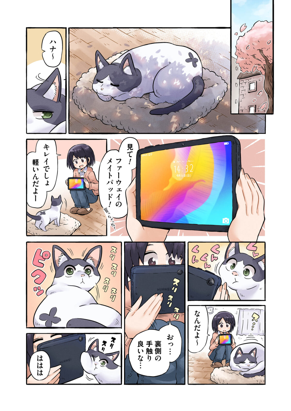 猫のハナちゃんの春夏秋冬を楽しく愉快にするHUAWEI MatePad T 10s。微笑ましい猫ちゃんとのお家での風景を描いたマンガでしたが、実はこのマンガの中にはHAUWEI MatePad T 10sならではの機能・特性がたくさん盛り込まれています。マンガのシーンを交えつつ、HUAWEI MatePad T 10sが暮らしにどんな豊かさを与えてくれるのかを紹介していきましょう!