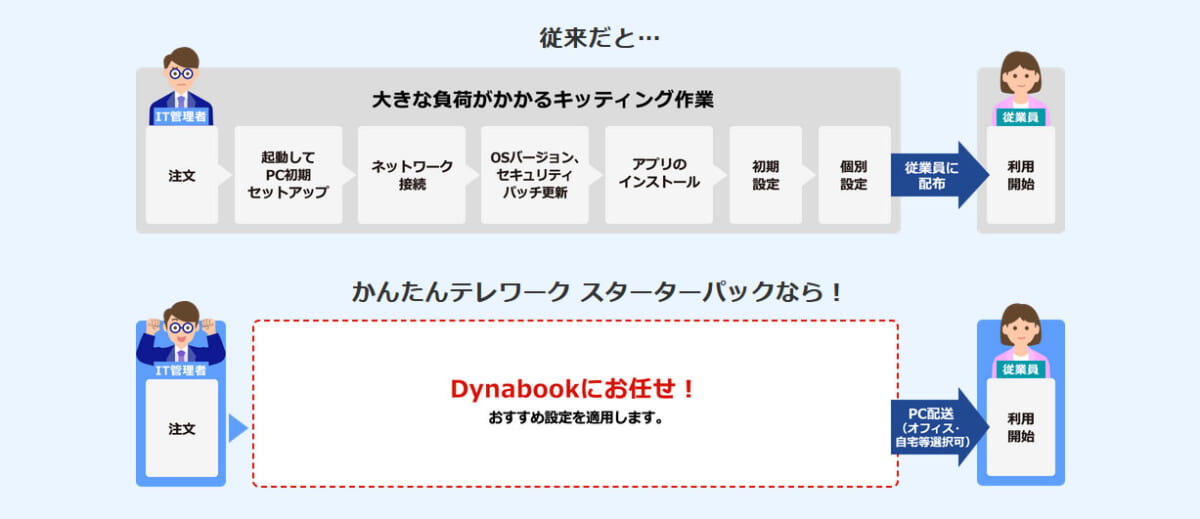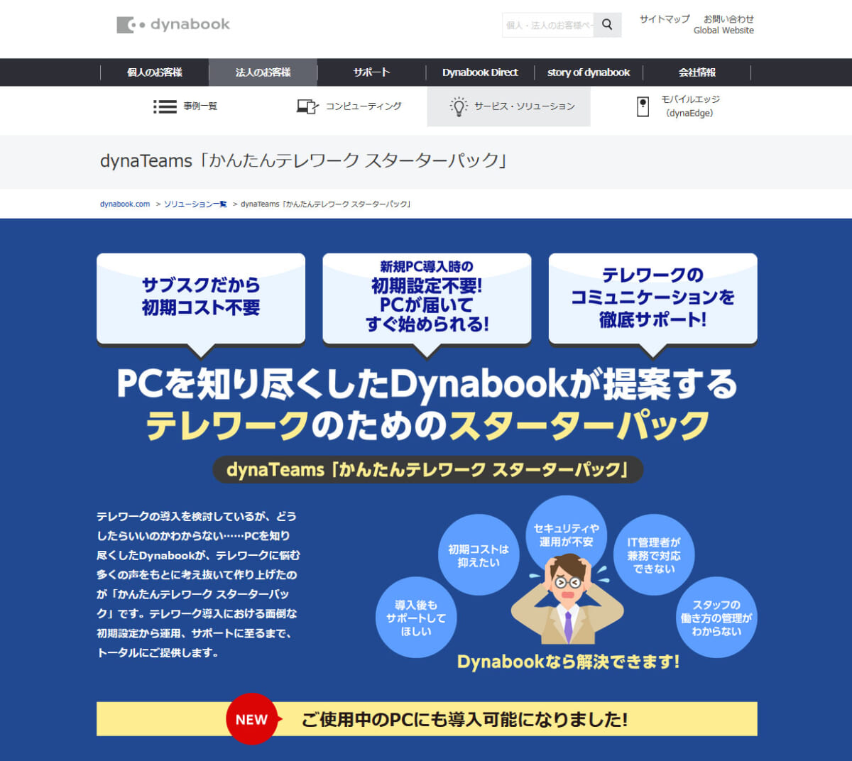 ここでは、テレワーク環境に関する課題をまとめて解決できるDynabook社が提供するソリューション『かんたんテレワーク スターターパック』に注目。その実力をチェックしていこう。