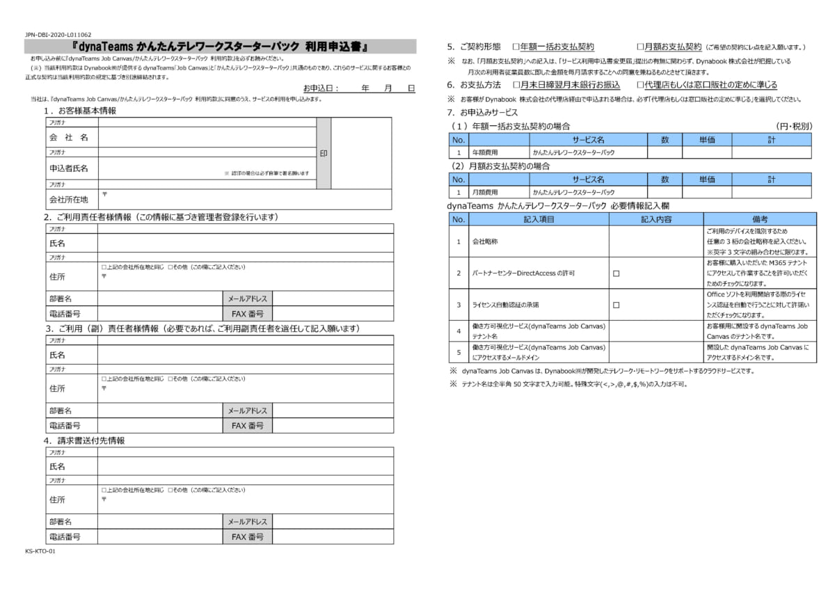 まずは『かんたんテレワーク スターターパック』の紹介サイトにある“申し込み”または“製品の導入検討・購入に関するご相談・お問い合わせはこちら”をクリックして、必要事項を入力し、同サービスを申し込む。すると、数日後に申込書がメールで届く。