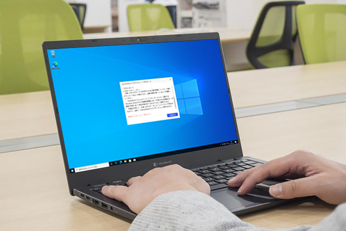 申込書を送付すると、申し込まれた内容に合わせて、Dynabook社側で『Microsoft Azure』の初期構築を行なう。初期構築が完了すると、いよいよパソコンの設定を変更して、テレワーク環境の切り替える作業に移る。