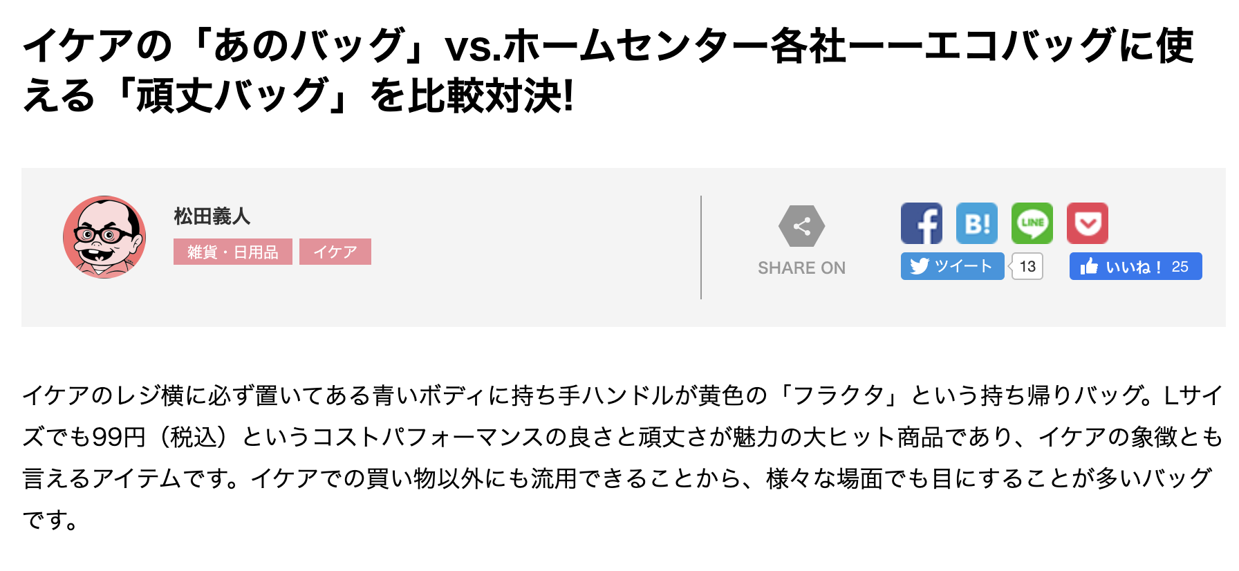 ここでさっそく言葉を発してみました。喋る文章は、今年3月『GetNavi web』に掲載された「イケアの『あのバッグ』vs.ホームセンター各社~」という記事です。