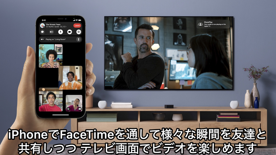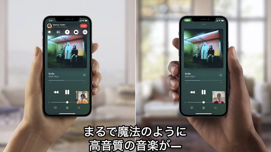 このほか、FaceTimeの通話者同士で音楽や動画を同時に楽しめる「Share Play」機能も利用可能に。インカメラで自分が視聴している姿を映すことができるので、反応を共有して一緒に盛り上がることができます。Share PlayはApple MusicやApple TVのほかにも、HuluやTikTokといったサードパーティーのアプリにも対応する予定です。