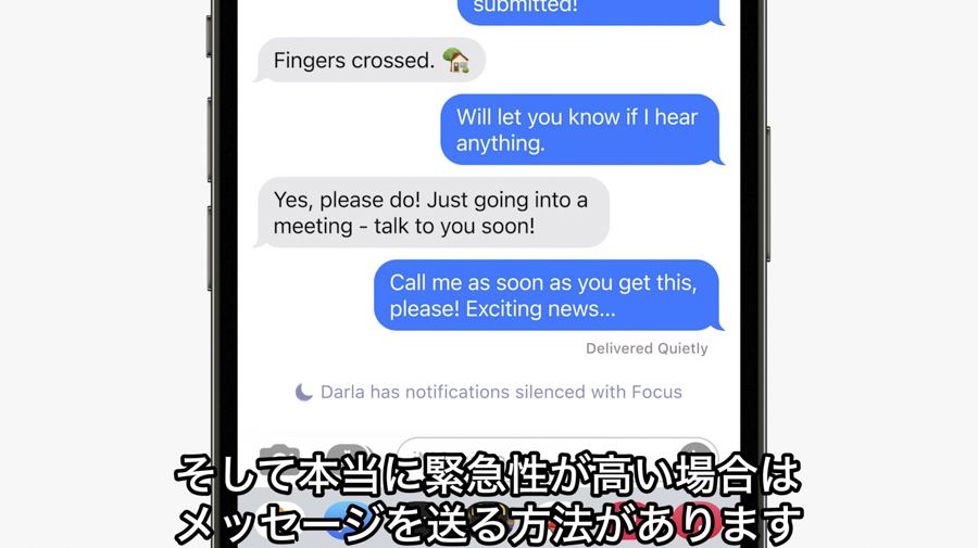 また、ナイトモードにすれば通知をすべてオフにでき、メッセージを送った人にもいまは通知できないことが伝えられます。緊急時などには、相手がナイトモードに設定していても通知を表示させるようにすることも可能です。
