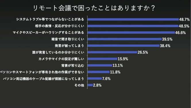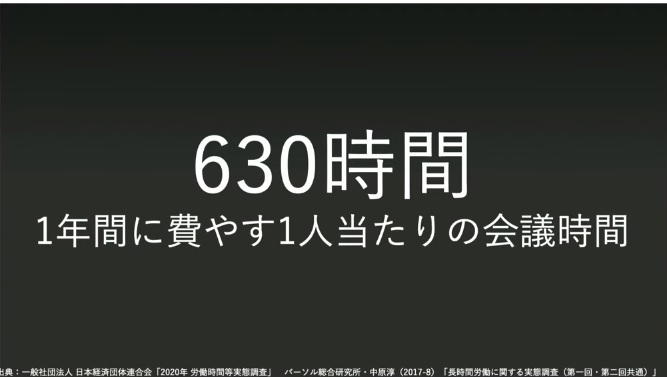 同社によれば、上場企業の役職についている人を対象に調査した結果、1年間で会議に費やす時間は約630時間になっているとのこと。現在では新型コロナウイルスの感染拡大による影響で、このうち大部分がリモート会議になっていると推測されます。