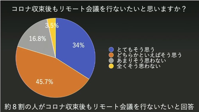 また、コロナ収束後もリモート会議を行いたいと考えている人は「とてもそう思う」「どちらかといえばそう思う」と答えた人を合わせると約8割にものぼることがわかりました。