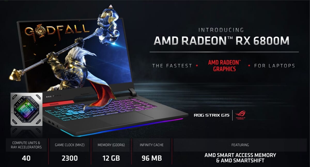 現時点で市場投入が判明しているのは、上位モデルから順に「Radeon RX 6800M」「Radeon RX 6700M」「Radeon RX 6600M」の計3GPUで、性能的にはハイエンド~ミドルクラス帯をカバーしています。