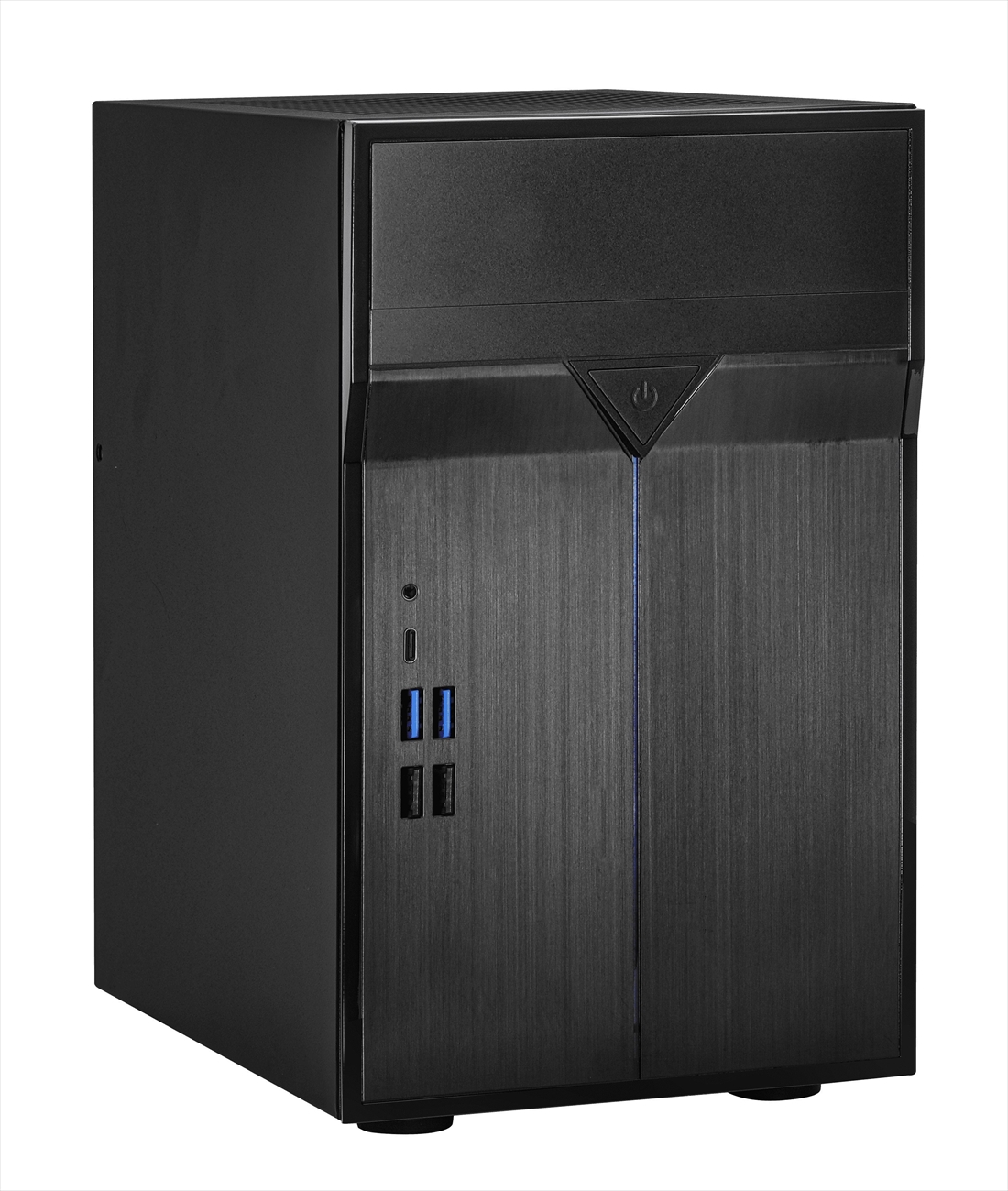 本製品は、安価さと容積約1.9Lの小型筐体でちょっとしたブームになった「DeskMini」シリーズのバリエーション製品です。特徴的なのは、従来のDeskMiniを大幅に上回る本体サイズ幅168×奥行き220.8×高さ268mm、容積約9.94Lの大振りなケース。コンパクトさは失われた反面、グラフィックボードや光学ドライブなどを搭載可能になり、組み立ての手軽さはそのままに拡張性をアップさせています。グラフィックボードを搭載する場合、内蔵グラフィックス機能がないCPUを搭載できる点もこれまでとの大きな違いです。