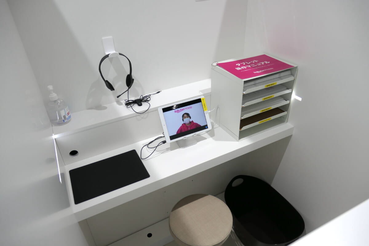もう一つは、遠隔地にいるスタッフがディスプレイ越しに契約サポートを行なう「リモートブース型」。ただし、リモート対応とは言え、郵便局には楽天モバイルのスタッフが常駐し、ブースの利用方法などを案内してくれるとのこと。なお、リモートブースでもオンライン契約は可能で、その場合はスマホやSIMカードは後日郵送される仕組みです。