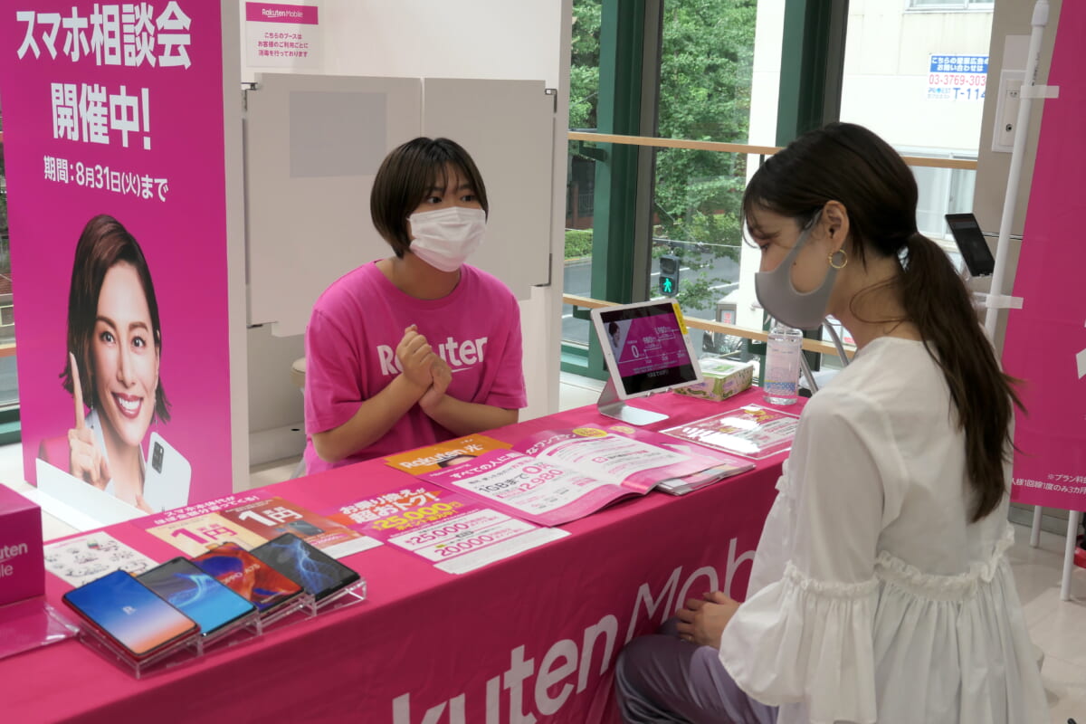 2021年3月、日本郵政グループと楽天グループが業務提携を発表しましたが、両社の協業による取り組みが早くも始まっています。その一つが「楽天モバイル 郵便局店」です。郵便局内に楽天モバイルの申し込みカウンターやサービスの説明が受けられるブースが設置されるもので、まずは東京・埼玉・千葉の10か所の郵便局で、2021年6月から8月まで期間限定で営業しています。