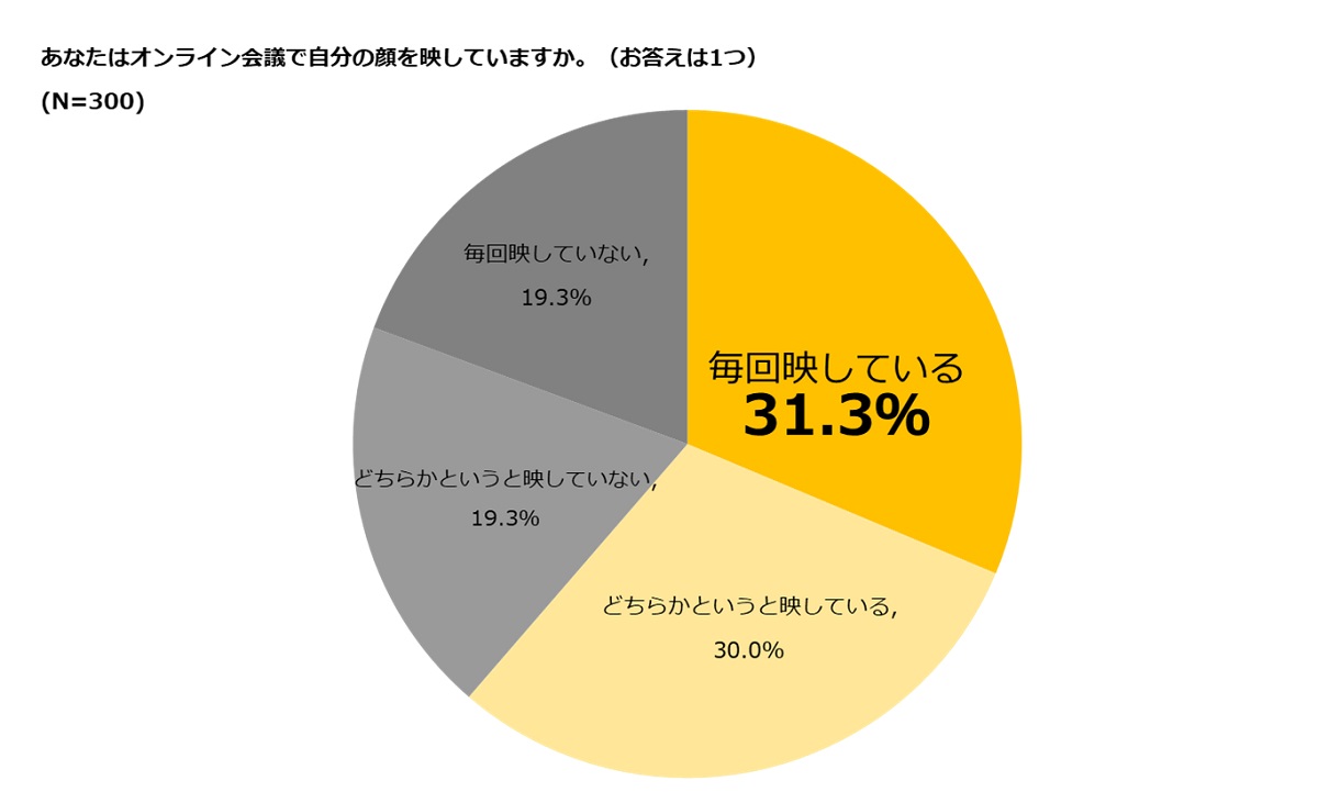 一方で、 自分自身が「毎回自分の顔を映している」と回答した人は約3割にとどまり、相手の顔は見えたほうが良いが、自分は毎回表示したくないという矛盾が生じていることが判明しました。
